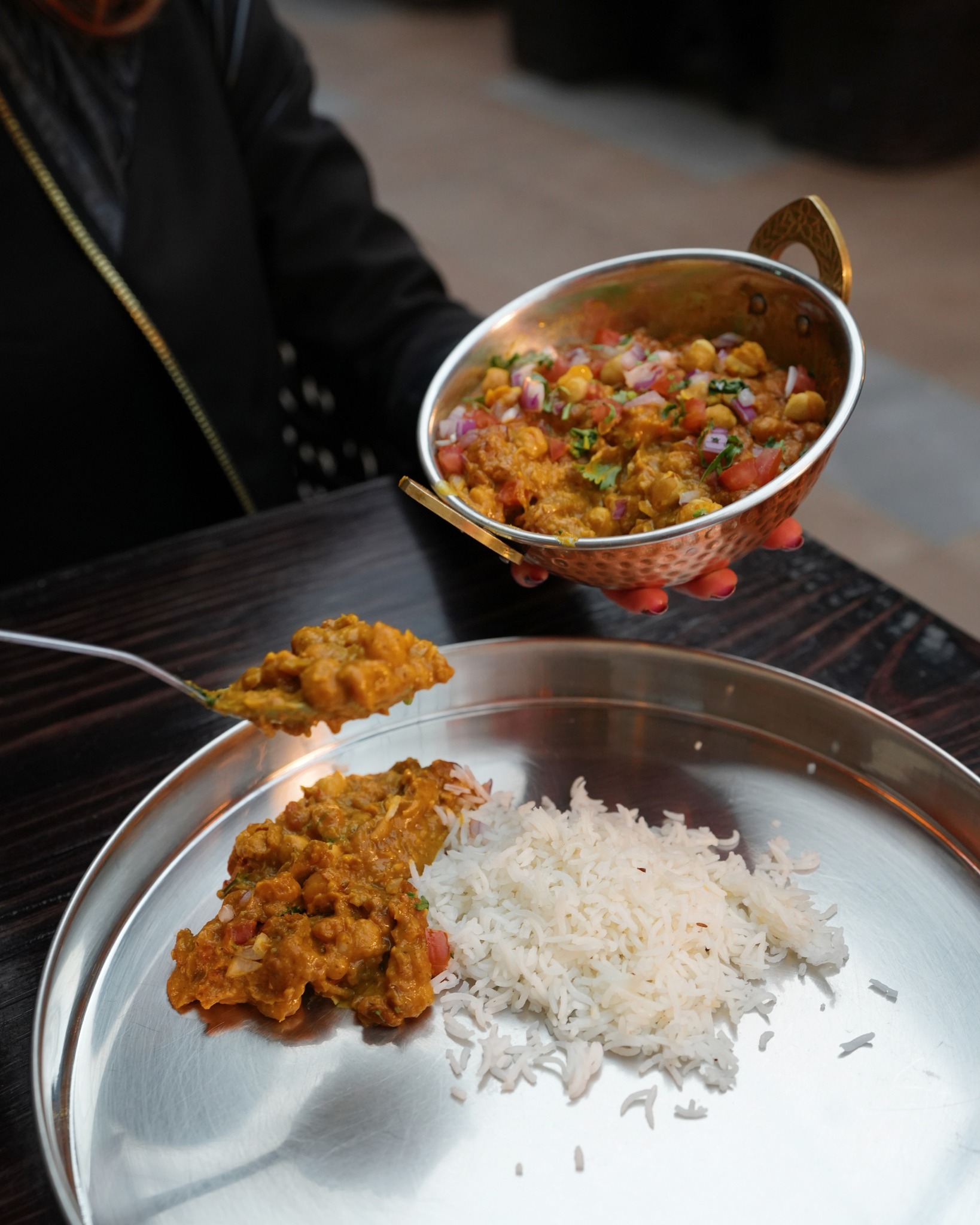 También sirven chai tradicional con leche y especias. No es el chai comercial al que muchos están acostumbrados. Es el chai que se toma en casa, en la mañana y al atardecer. En postres destacan el kheer y el gulab jamun. Ambos reconfortantes y fieles a la repostería clásica india.