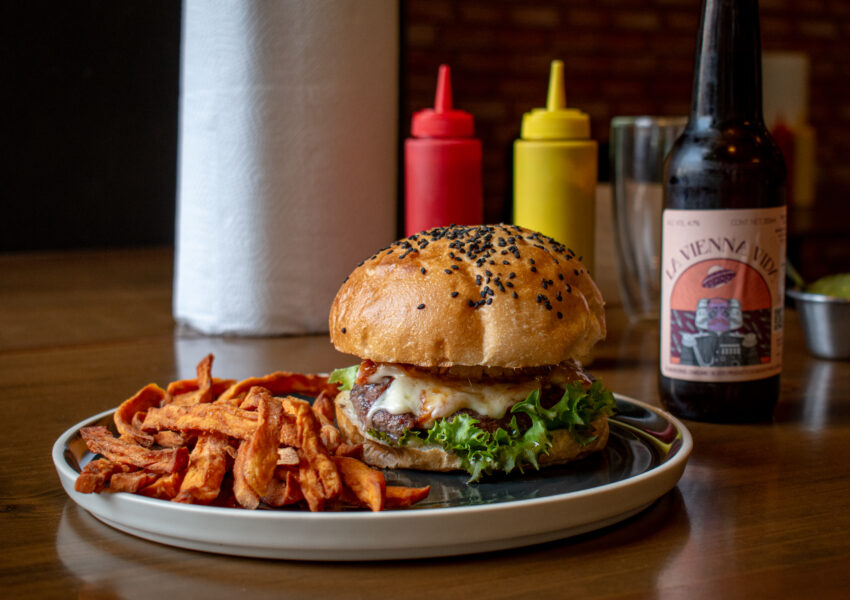 Todas las burgers pueden pedirse en tamaño regular o slider, elaboradas con carne hecha en casa, verduras frescas y pan de masa madre. Además, hay opciones con pollo empanizado o portobello, para quienes prefieren alternativas distintas.