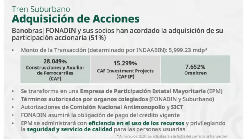 El Tren Suburbano cambiará de nombre y administración, convirtiéndose en el Tren Felipe Ángeles, con operación pública y tarifas promocionales para su nuevo ramal hacia el aeropuerto.