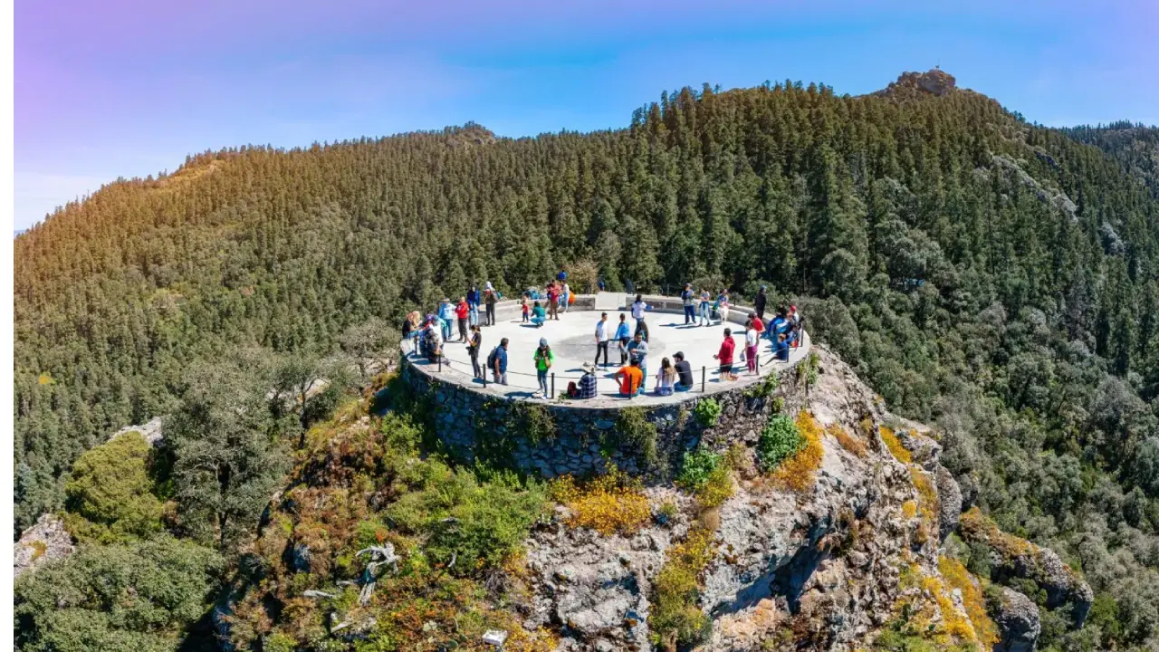 Dentro del Parque Nacional El Chico, Hidalgo, la Peña del Cuervo ofrece vistas panorámicas de Mineral del Chico y formaciones rocosas emblemáticas como “Las Monjas” y “Los Frailes”.