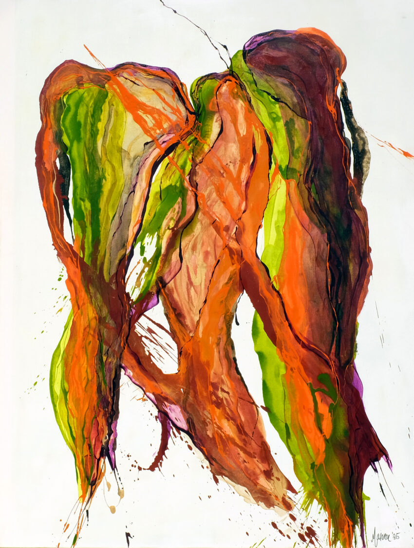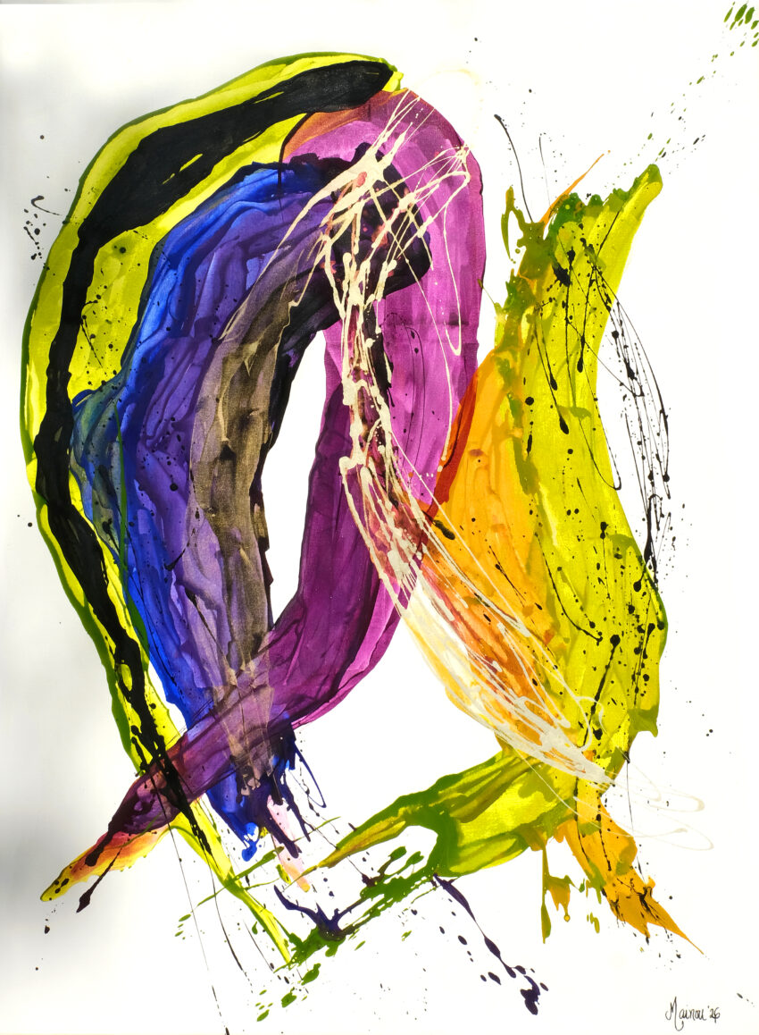 En esa interacción entre manchas opacas y transparencias, entre gestos rápidos y pausados, se construye una gramática visual coherente que apuesta por la sensibilidad. La intención es clara: que cada persona viva una experiencia única, sin miedo a “entender mal” la obra.