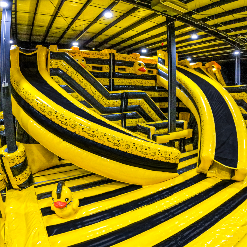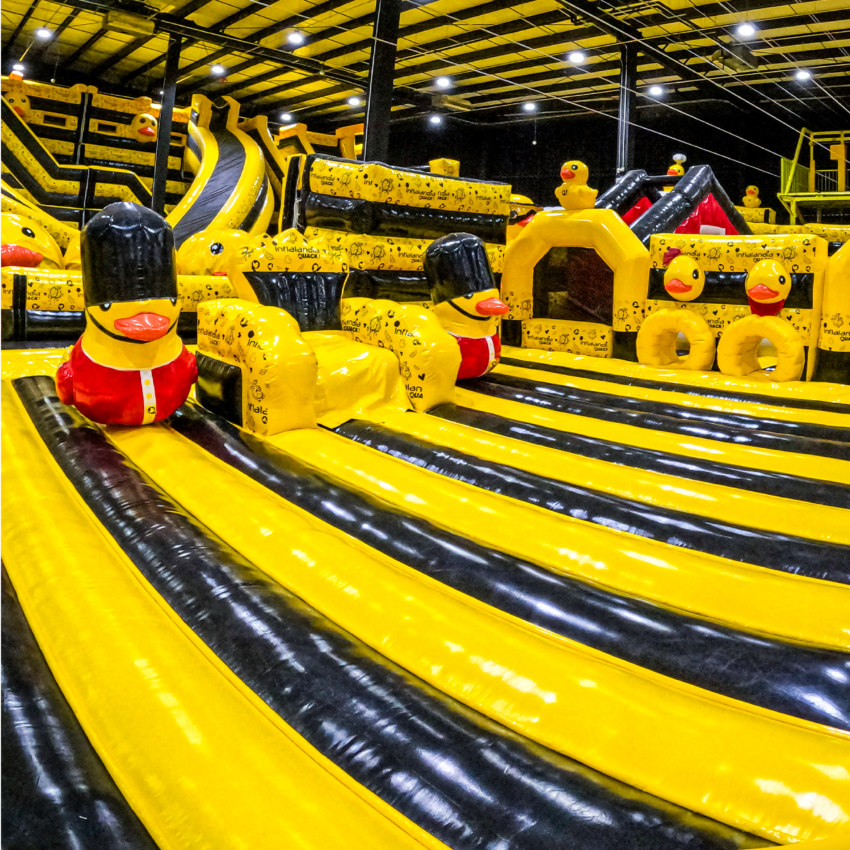 Inflalandia es un parque inflable temático de patitos de hule bajo techo, diseñado para todas las edades, con circuitos gigantes, zonas de salto libre, retos físicos, albercas de pelotas y áreas temáticas que combinan actividad física y entretenimiento inmersivo.